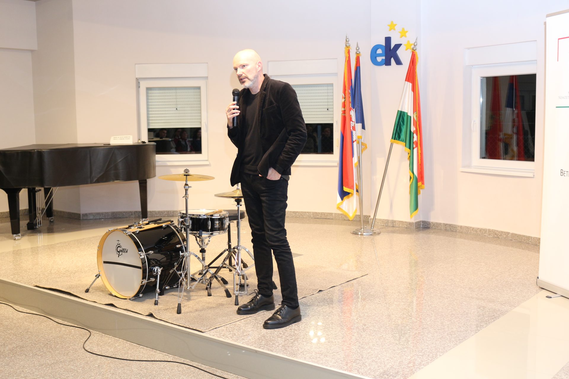 Előadását érdekesebbé és színesebbé tette egy rövid videóklippel, végül pedig egy dobszólóval. Ezzel azt hangsúlyozta, hogy az életünkbe folyamatosan beáramló mesterséges intelligencia mindenre képes, kivéve azt, amit egy ilyen improvizáció kiválthat a közönségből és az előadóból. Érzelmek, hangulatok, rácsodálkozás különböző dolgokra… ezekre csak mi, emberek vagyunk képesek.