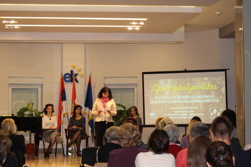 Ajkunk fakadjon dalra címmel tartottak zenés estet a díszteremben az Újvidéki Művészeti Akadémia hallgatói. A Színművészeti Kar másod- és negyedéves növendékei magyar népdalokat és operett-részleteket adtak elő.